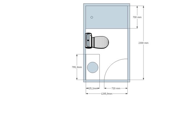 Aunque parece que la ducha y el espacio para el inodoro es más ancho de lo habitual (70 o 75 cms), ajustándose a las dimensiones que indica el compañer@, podría caber.