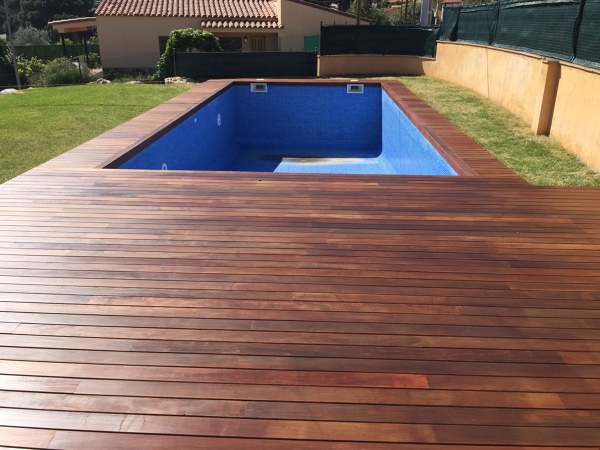 La tarima tecnologica se instala y no tiene mantenimiento,en cambio la de madera tropical (Ipe,Teca,,,,,) tienen que aceitarse cada año (sobre abril-mayo).