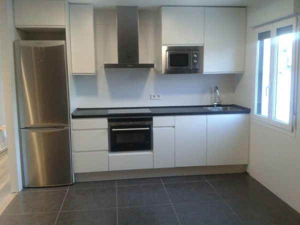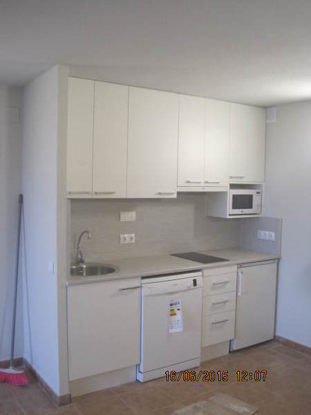 -Muebles bajos y altos de esta cocina de 3 metros largo con puertas postformadas color blanco brillo y el montaje 850 €+ iva.