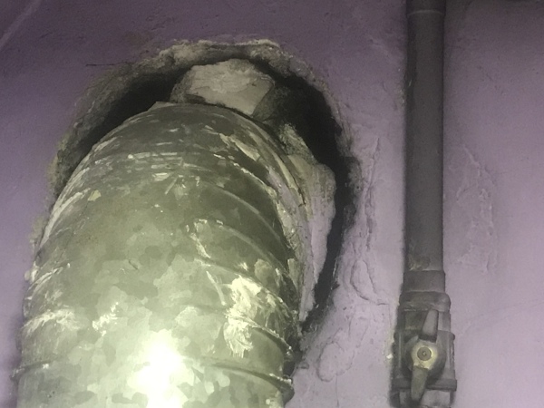 Es el tubo de la salida de humos de la caldera que con el paso de los años hay un agujero de unos 2centimetros todo alrededor del tubo en su entrada a la pared porque se ha caído en yeso que lo unía...