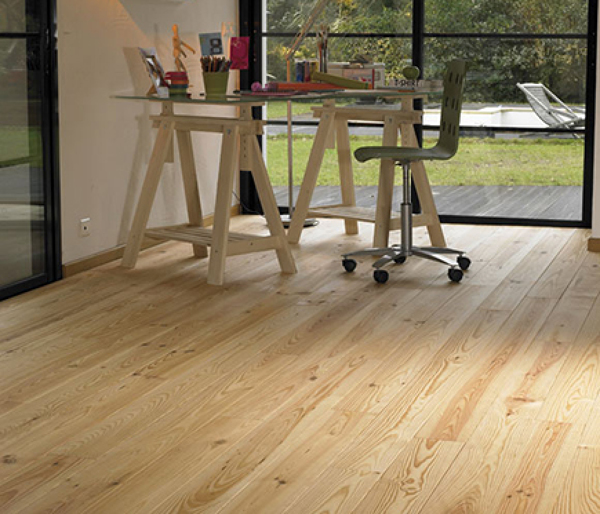 Hola buenas, bajo nuestra experiencia en el ramo de la carpintería y la limpieza nosotros te aconsejamos un suelo laminado flotante con junta en V de marca conocida y precio intermedio, si es hidrofugo mucho mejor, el Pino es un madera blanda barnizada y con el tiempo se tendrá que acuchillar y barnizar de nuevo, mismamente una silla de estudio con ruedas te dejarán la marca