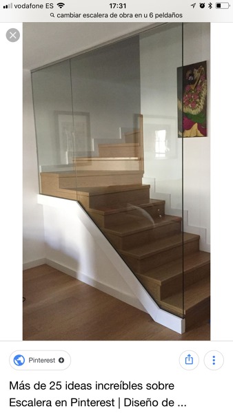 La intención es dejar el lateral de la escalera abierta, tipo la fotografía que he encontrado en internet que adjunto. Respecto a la cocina, es una pena, porque en los planos ese parecía ser el hueco perfecto para la nevera ya que la cocina es bastante pequeña, pero bueno.