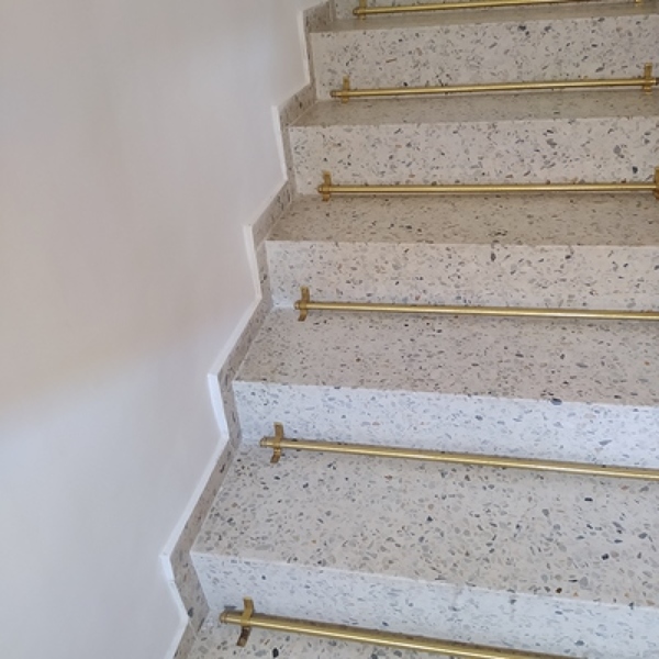 ¿Cuánto costaría renovar una escalera cubriéndola con microcemento? Es una escalera de terrazo. Son quince escalones y un rellano de 2m cuadrados aproximadamente. ¿Cómo se remataría el rodapié?¿Es resistente al paso este material, no resbala?