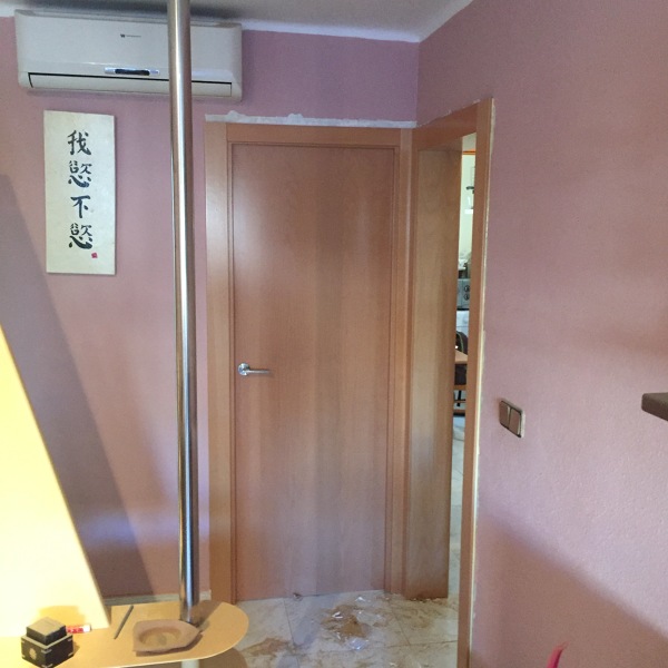 Hola, Elena, la puerta de la foto que instalamos a nuestro cliente era de madera de haya vaporizada.