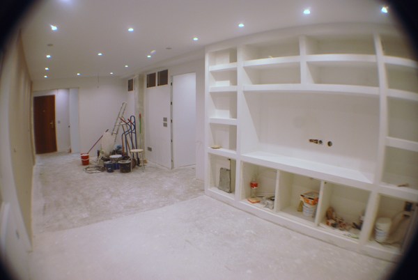En este último trabajo, integramos unos módulos de ikea conjuntamente con el pladur.
