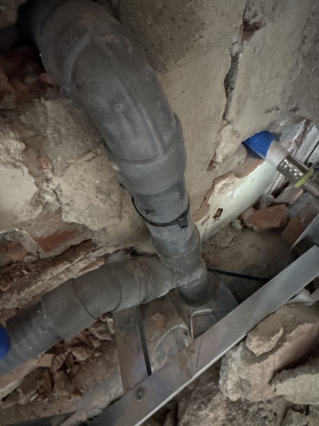 La cosa es que es un wc suspendido y ha enganchado toda la cocina en un punto del tubo de 110mm que va desde el inodoro hasta la bajante de tal forma que ese enganche de fregadero queda en mitad del trayecto.