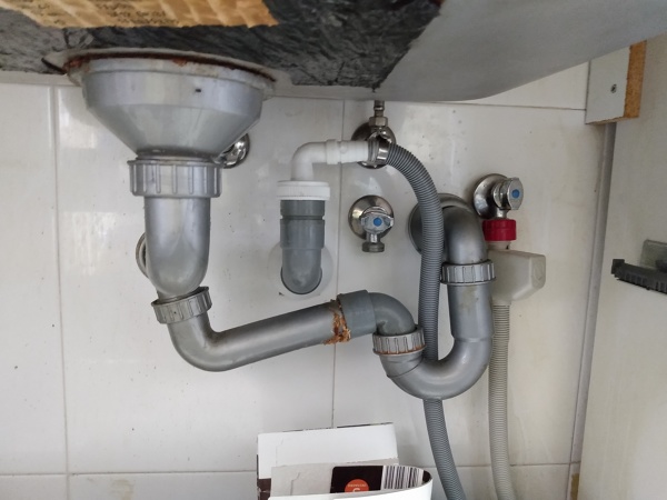 Os pongo foto de la instalación. A la derecha está el lavavajillas, que también desagüe ahí.