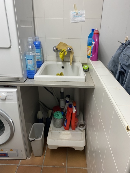 Para tender, si hay espacio, un tendedero que se puede bajar desde el techo, por ejemplo... incluso el poyete ese que tiene en medio "pide" desaparecer.