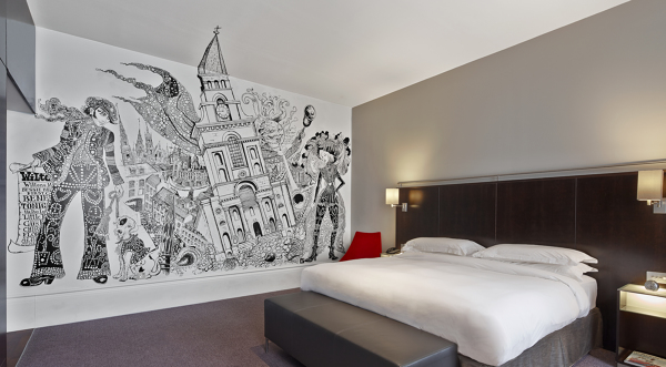 Nosotros somos especialistas en vinilos. Te recomendamos que cubras una pared de la habitación con un gran vinilo de pared que incentive su imaginación