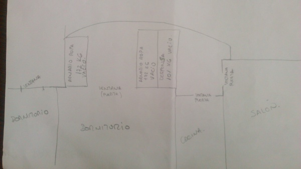 Hice una división con armarios en mi balcón para aprovechar espacios y, después de comprarlos, me acordé del peso. Las medidas del balcón son de 4,80 x 1,60, un lado es voladizo y el otro está sujeto a la pared. Un armario destinado a guardar ropa está en la parte voladiza, midiendo este 2,36x1,50x0,58 y pesando 172kg vacío. Luego, en el centro del balcón, se encuentran otros dos, midiendo en total la base en conjunto 1,50x0,93 y pesando 273kg vacio, uno destinado a ropa y el otro como despensa en el cual guardamos alimentos, productos de limpieza, fregona, escoba, etc.