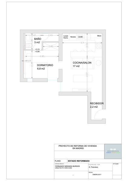 Uniendo el dormitorio 2 y el salon para hacer un comedor con cocina americana, mejora el paso y la luz pueda llegar a circular mucho mejor, el baño mas amplio con parte de la cocina actual y sacaria un vestidor a la habitacion 1. El espacio no tiene por que verse reñido con la comodidad. Para esta reforma, nosotros le dariamos un toque minimalista, colores claros como blanco y gris, mobiliario sencillo con lineas rectas sin tiradores, moderno, practico y elegante. En el comedor, realizaria un techo moderno con iluminacion led, incluso en la habitacion, pero antes de eso estudiaria la envolvente por el tema del aislamiento.