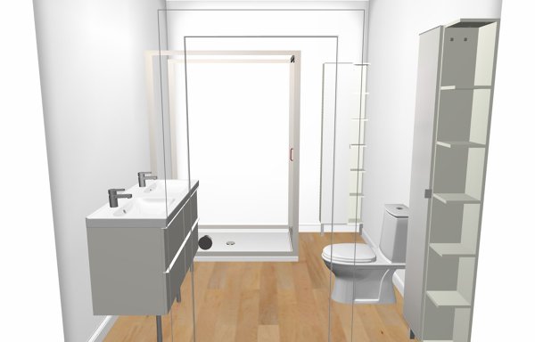 Hola Adrian, es solo una idea.Tu baño con la amplitud que tiene se puede distribuir de varios formas.
