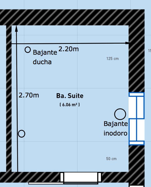 Hola quisiera saber que ideas para diseño de un baño de la habitación de matrimonio, el baño tiene unos 6m2. Adjunto plano para que os sirva de ayuda.