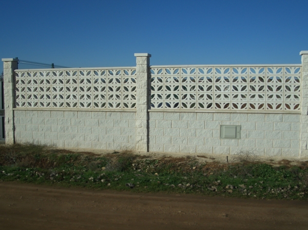 Las dimensiones las saca multiplicando... los bloques de hormigón tipo split del zócalo ciego inferior, por lo general miden 40 x 20 cms (hay otras dimensiones pero ésta es la más habitual) y las piezas de celosía superior también suelen ser de 20 x 20 cms (o 15 x 15 cms)... pero si amplia usted la foto (es que la definición no es buena) y cuenta las alturas de bloque en las pilastras intermedias, multiplicando por 20 cms, tendrá la altura aproximada.