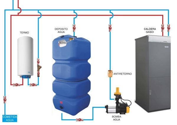 Mi duda es si tengo que poner un antirretorno donde lo indica el plano y si seria posible el poder seleccionar cuando quisiera el usar el agua del deposito o de la general.