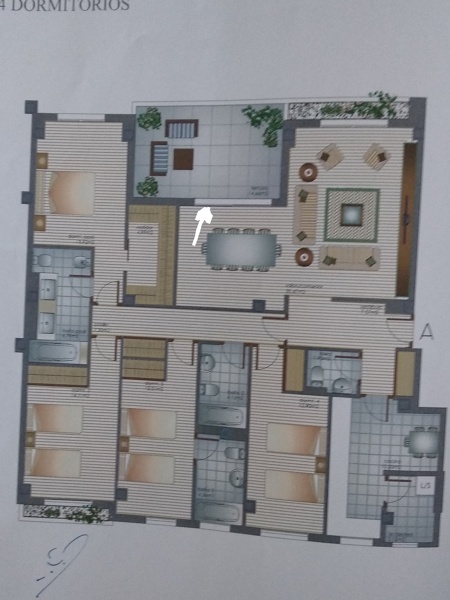 Gracias. Es el plano que nos dieron con el contrato al comprar la casa. La han entregado con una puerta abatible, que cruza medio salón