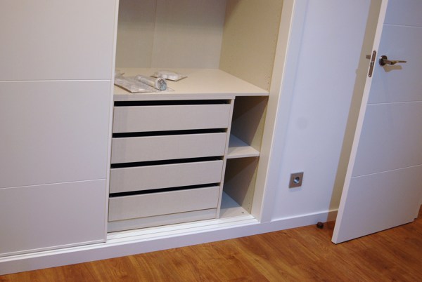 Además, existen paños de frente de armario a juego, que el carpintero puede adaptar como puerta corredera.