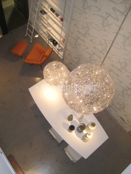 Se trata de las lámparas Fil de Fer de la firma italiana Catellani&Smith, están realizadas en hilo de acero y funcionan con bombillas tipo halopín. El precio de la esfera de 60cm está entorno a los 1018€ y la de 90cm de 1550€. Estos precios pueden variar según el acabado del metal, el tipo de transformador y el tamaño del cable para suspender del techo.