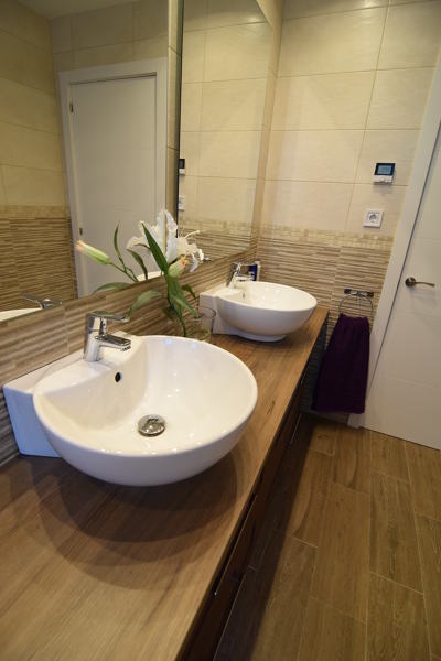 Si el lavabo incorpora agujero para grifo puede llegar hasta los 45 cm perfectamente.
