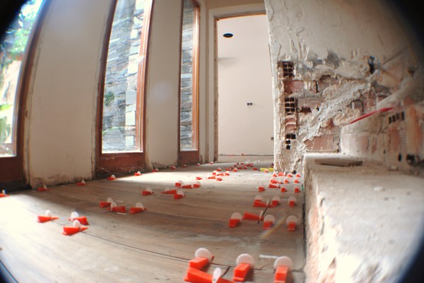 Para evitar este problema se utilizan cuñas de nivelación (ver foto), que mantienen "atado" cada encuentro de azulejos mientras seca el cemento cola. A las 12h se eliminan las cuñas y los azulejos quedan perfectamente enrasados.