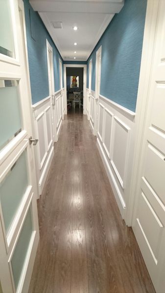 Ese arrimadero es en dm lacado y está instalado por un carpintero o ebanista.