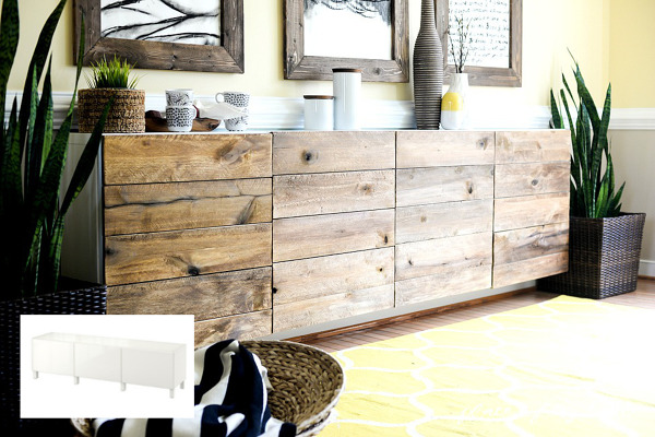 A mí me parece madera de palet, lijada, teñida con nogalina y barnizada.