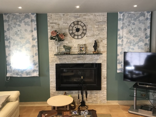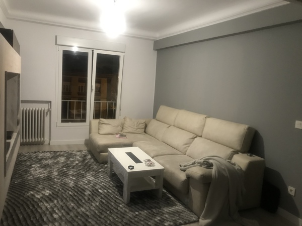 Hola Mari luz, te adjunto una foto de un salón que acabo de decorar: Simplemente cambiando el gris de la pared, y colocando unas cortinas coordinadas, aparte de algún cuadro o reloj, tendrías un cambio sustancial.