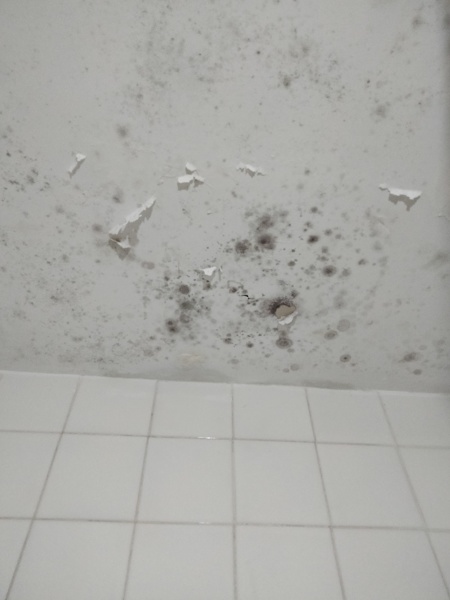 En cualquier caso, según la fotografía parece el tipico problema de condensación de los baños, encima de la ducha.