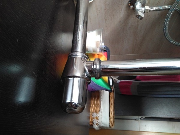 Buenas tardes, como ha dicho Jose Luis en el comentario anterior, el sifón está mal colocado y seguramente lo colocarán así porque no se lo permitía la altura con respecto al muebles.
