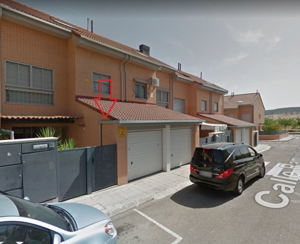 ...es más, le pongo un ejemplo que conozco bien (viviendas de las que fui jefe de obra), en proyecto salieron sin canalón en el tramo de cubierta sobre los garajes y, como el agua vertía sobre la vía pública y no quedaba recogida, hubo que hacer el "invento" que marco en la foto, colocar un canalón exterior que recogiese el agua que caía en cubierta de propiedad privada y reconducir el canalón al interior de la finca para ahí bajar a saneamiento.