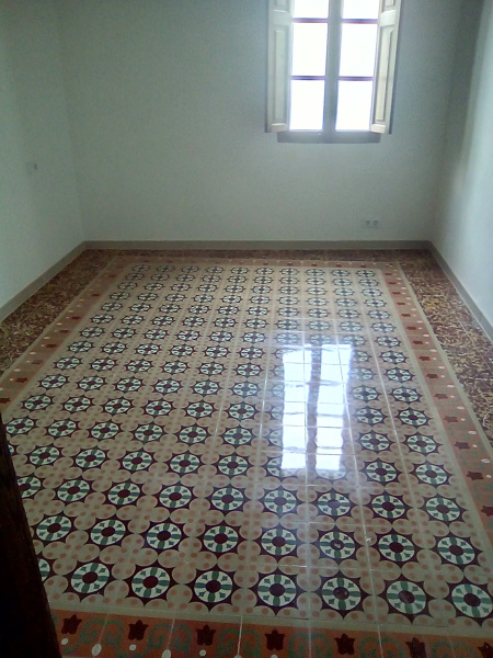 Estoy con mis compañeros, eso parece ser baldosa imitacion hidraulico, hay cientos de modelos y formatos. Ademas ese dibujo de la foto, yo no lo he visto en baldosa hidraulica, me parece demasiado moderno.