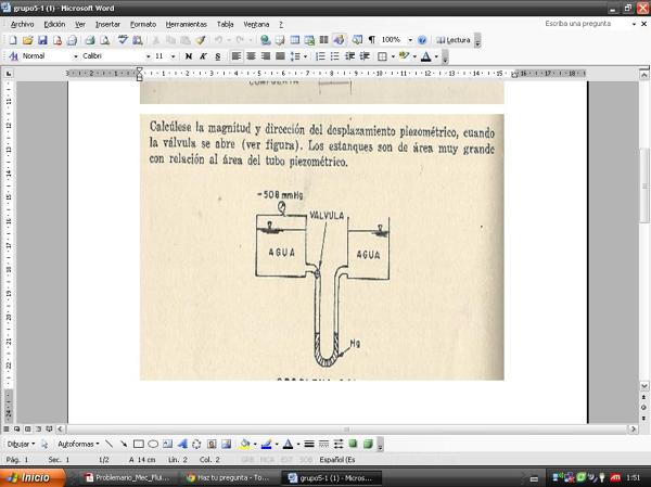 Tengo un ejercicio en el cual me piden el desplazamiento que tiene el líquido del piezómetro cuando se abre una válvula. Pero no sé cómo hallarlo porque no me dan ninguna altura para guiarme. Les adjunto el ejercicio. Gracias de antemano.