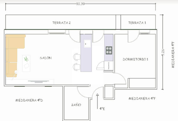 - Hacer una península que salga de la pared frontal y separe cocina y salón.