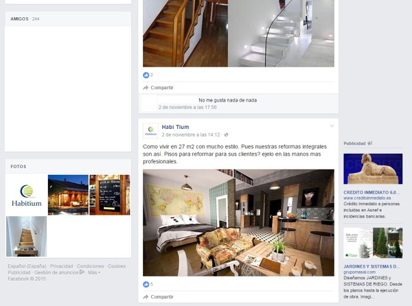 También ratifico y apoyo lo que comentas Josefina respecto a la notificación de las fuentes, como ejemplo, subo otro pantallazo del perfil Facebook de Habi Tium del 5 de noviembre, fotografía idéntica a otra publicada en una entrada sobre aprovechamiento de escalaras en Habitissimo, solo que mientras en Habitissimo se nombra la fuente Homeheaven, Habitium pega la foto en su perfil y la adorna con una frase, pues bien, Homeheaven deja bien claro al pie de su web la protección copyright de sus contenidos.