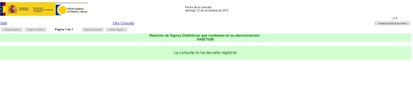 Sobre Habitium, sinceramente, me da igual, no es mi competencia, geográficamente está en la otra punta de España, pero lo que no se puede hacer es fusilar el trabajo de los demás y usarlo como propio, ya no solamente por la foto de la compañera Elena Sánchez, siguiendo por fotos de blog y artículos de Habitissimo y, por lo que ya me ha confirmado un amigo, fotos de un proyecto de otro compañero catalán que este señor se ha adjudicado como propio o como ejemplo en su página web, fotos y proyecto que tienen derechos de autor e imagen, algo que por cierto Habitium ni siquiera tiene ni señala en sus sitios web. Habitium… alguien que por cierto, tampoco da la cara en ningún momento, escondido tras un logotipo y un nombre ¿comercial? (ni siquiera registrado (adjunto comprobación en la Oficina Española de Patentes y Marcas), al menos usted tiene nombre y apellidos además de su empresa y logotipo. Es más, mañana mismo cualquiera se podría plantar en Patentes y Marcas, pagar las tasas correspondientes y registrar Habitium y ya tendría más fuerza e imagen legal que alguien que no da la cara, no sabemos en ningún momento quien es y además nutre sus sitios son imágenes de otros, ¿eso defiende usted?, ¿le gustaría que yo me atribuyese algún trabajo de ustedes?, a que no… pues a mí no me gustó que se atribuyesen el trabajo de otros.