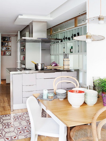 Si quieres más espacio y más luz, plantéate la posibilidad de eliminar todos los tabiques y rediseñar la cocina con una isla o barra para el desayuno que incluya el fregadero por ejemplo: ganaría el espacio del pasillo y tendrías un concepto abierto.