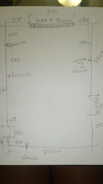 Y para sofá y tele, tu dices ponerlo en ese lado, no? Por donde esta ventana, que está también cerca la antena para la tele