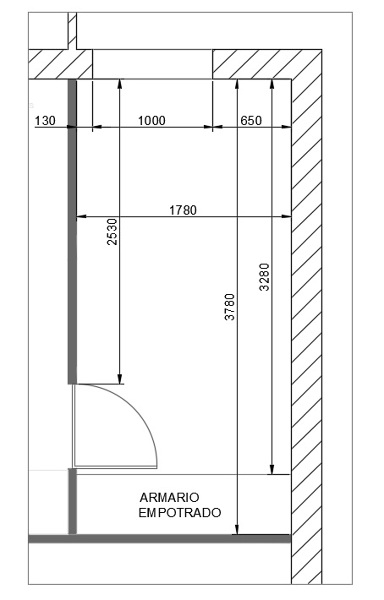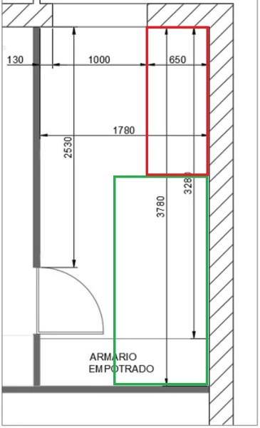 Piense que si quita el armario es algo de obra si,... pero el nuevo armario dónde le indiqué, en la posición dibujada en rojo, puede ser de obra o puede comprarlo para montar.
