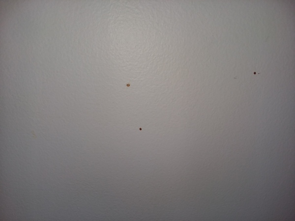 Ultimamente en la paredes y techo de mi casa y principalmente de mi cuarto han aparecido unos puntitos marron/ anaranjado y no se el porque. Me gustaria saber si es algun insecto que hace esto y si es asi saber cual seria para combatirlo ya que tengo una bebe y no me gustaria que se me enferme o algo por el estilo. Por favor si alguien puede ayudarme se lo agradeseria.