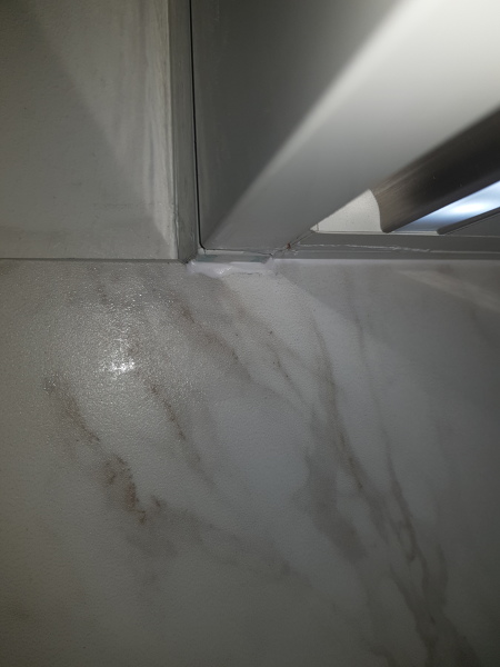 Acaban de terminar la reforma de mi cocina pero el acabado de la encimera no me termina de convencer. Donde se ha roto el material lo han rellenado con silicona. Igualmente donde no han medido bien. Y en una zona del mueble para nivelar han calzado la encimera con algo y se ha quedado un hueco enorme que han rellenado con silicona también.