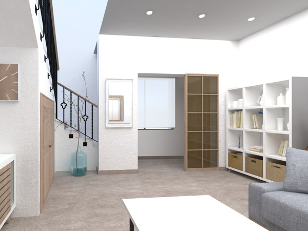 ¿Y dónde está la accesibilidad en el render que adjunta?... veo una escalera, pero no veo solución de accesibilidad para salvar esa escalera, aunque si fuese una vivienda unifamiliar, está claro, elevador hidráulico en el hueco de la escalera como primera opción y silla salva escaleras como segunda (más que nada, por la incomodidad de lo que ocupan y espacio que le restan a la escalera).