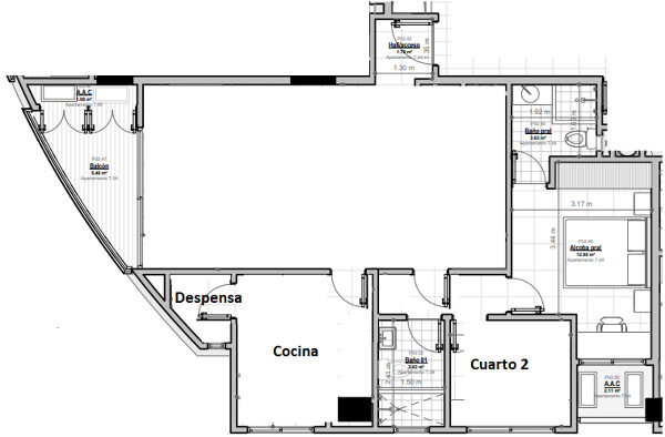 Podrian sugerirme una distribución para el siguiente apartamento.