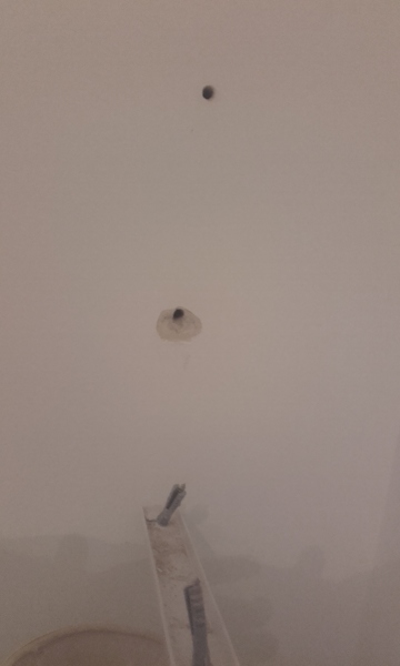 Ha ocurrido porque el profesional que coloco la balda, al hacer el orificio y notar que había horadado en hueco..... Tenia que haber puesto los que se llaman tacos de paraguas y no normal como veo que ha puesto