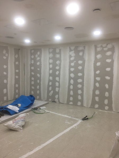 Hay pladur para zonas húmedas es el de color verde, puedes poner azulejos o el acabado que quieran sobre el.