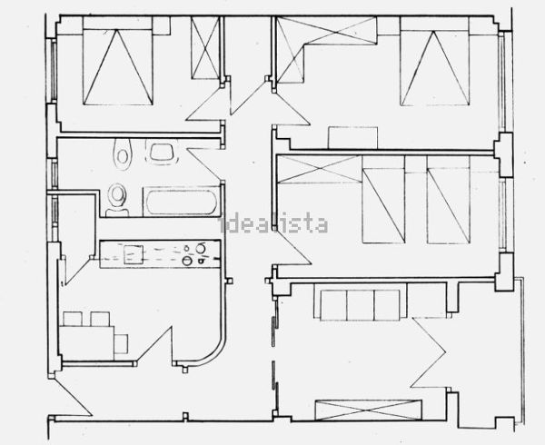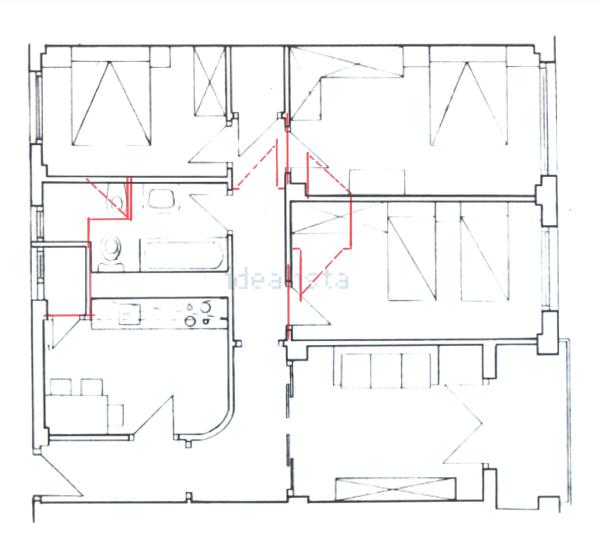Además, el armario del final del pasillo, lo cerraría y daría ese espacio al dormitorio medianero con el baño para generar un pequeño vestidor. También se podrían modificar los accesos a los dos dormitorios restantes, generando un pequeño vestíbulo de 1 mt2 alrededor del pilar que permitiese el acceso a ambos dormitorios, lo cual permitiría bajar la entrada del dormitorio medianero con el baño hacia el pasillo y ganarle metros a dicho dormitorio.