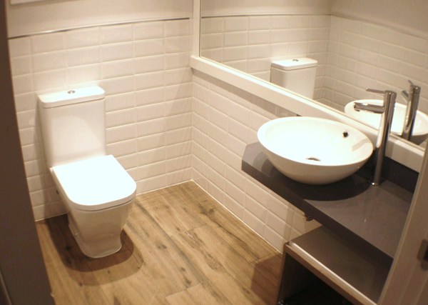 Reformar un baño eliminando todos los sanitarios y poniendo únicamente un lavabo y un váter nuevo. A parte poner un nuevo alicatado en suelo y pared y eliminar el techo de escayola poniendo uno nuevo.