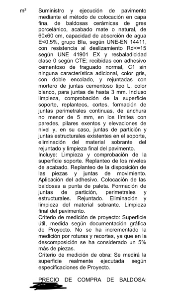 ¿Qué dice exactamente la partida de colocación del material?... ¿la puede transcribir?.