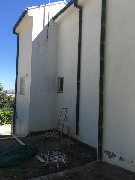 2. tienes bajante ,una ventana y una rejia de ventilacion que parece que viene del sotano o garaje