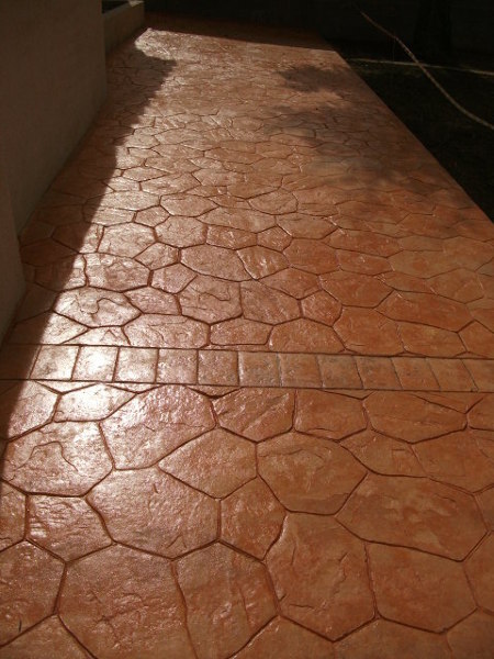 Ja hi ha un paviment de formigó i molt resistent (Havia estat el garatge d'un camió), així com pla. Només s'hauria d'anivellar per algun lloc que hi ha 1 o 2 cms. de diferència El vull transformar en part d'habitatge i s'escau un paviment estampat i amb color (possiblement verd o marró, a decidir un cop pintats els armaris laterals). No tinc fotos, ara. El lloc es Begur.