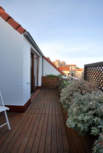 En otro dúplex en A Coruña hicimos una solución similar con una jardinera de madera pero combinada con una barandilla de vidrio. Te dejo fotografías.